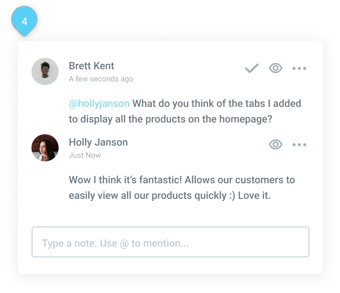 Gather feedback and collaborate on your website development with Notes. Add comments in the editor for your team or the front-end for authorized users or clients.