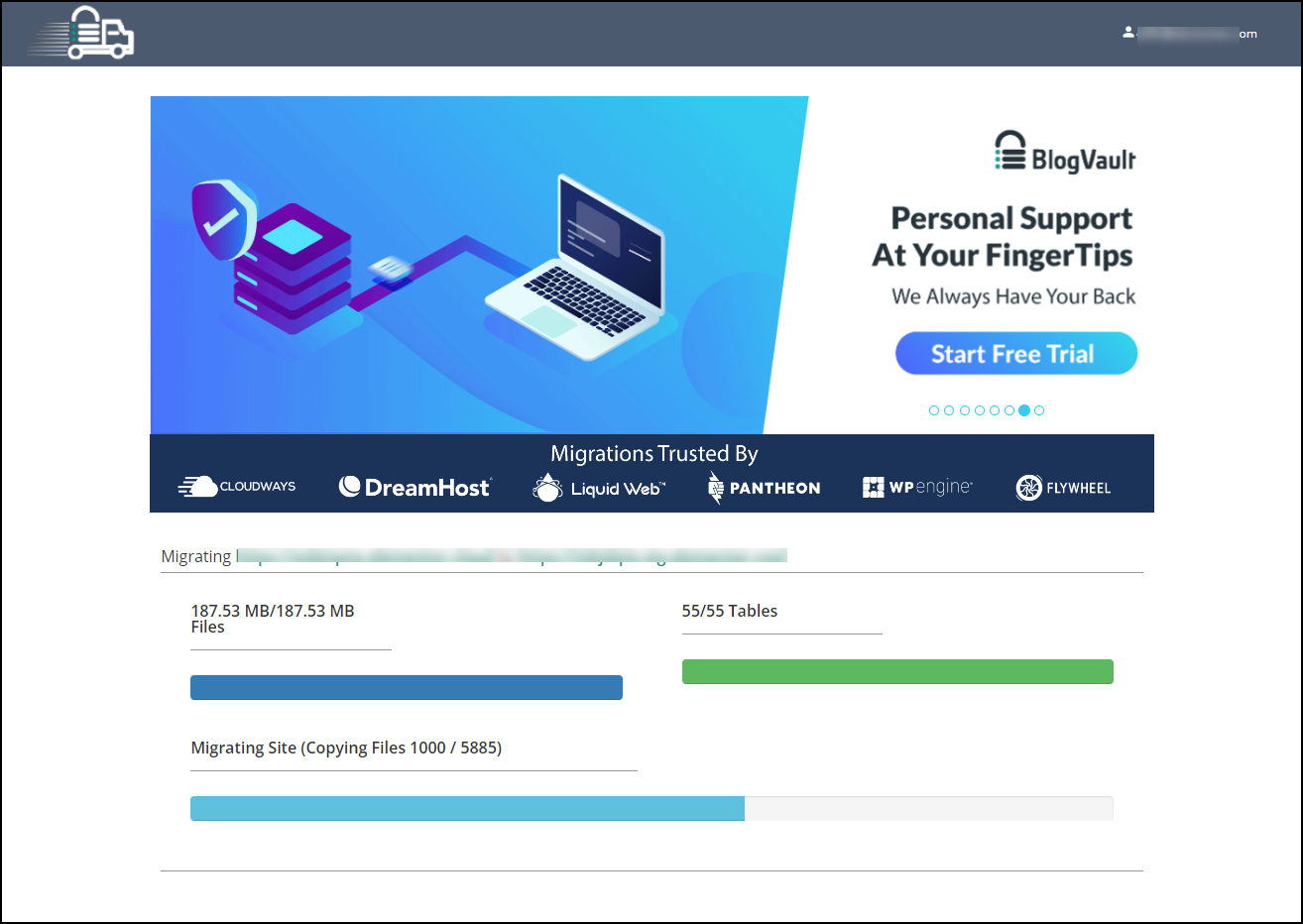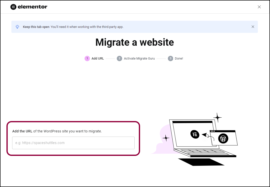 - Go back to the Migrate a website tab.