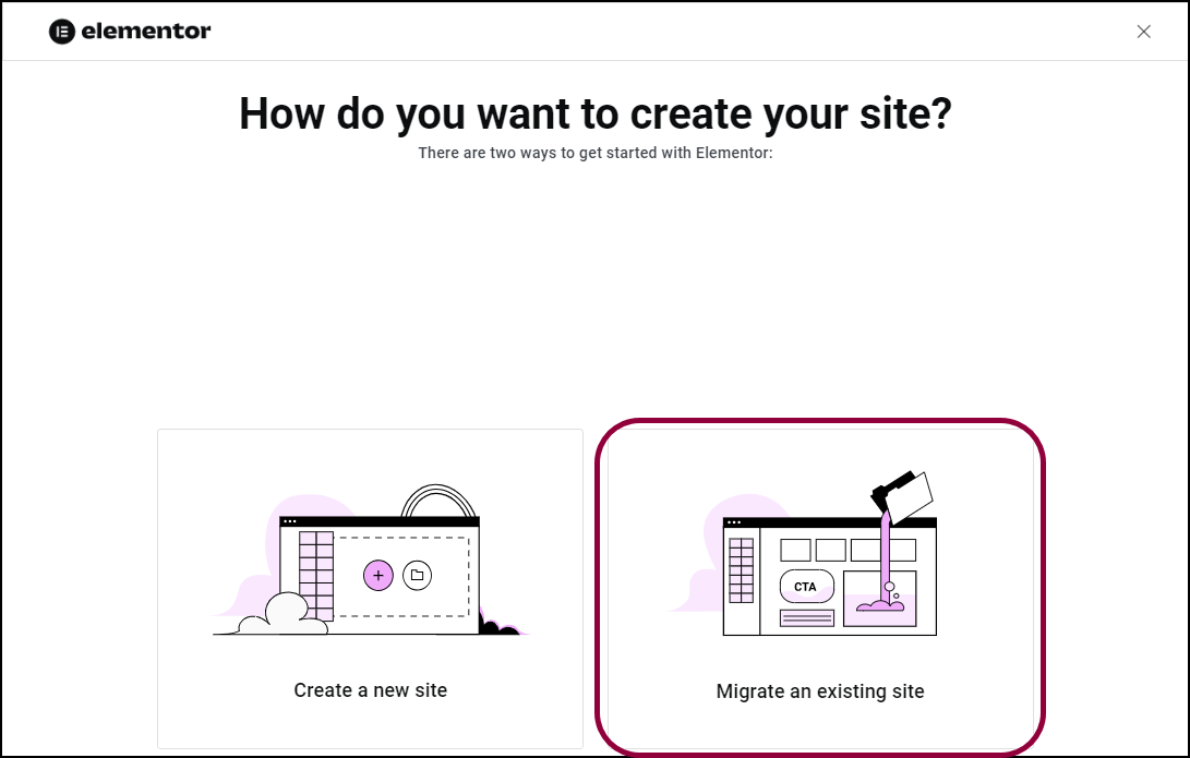 - Migrate an existing site to an Elementor Host site you have already created.