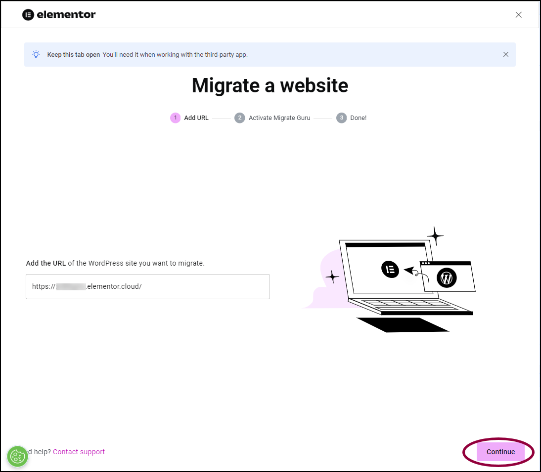 - Migrate your existing site when you create a new Elementor Host site.