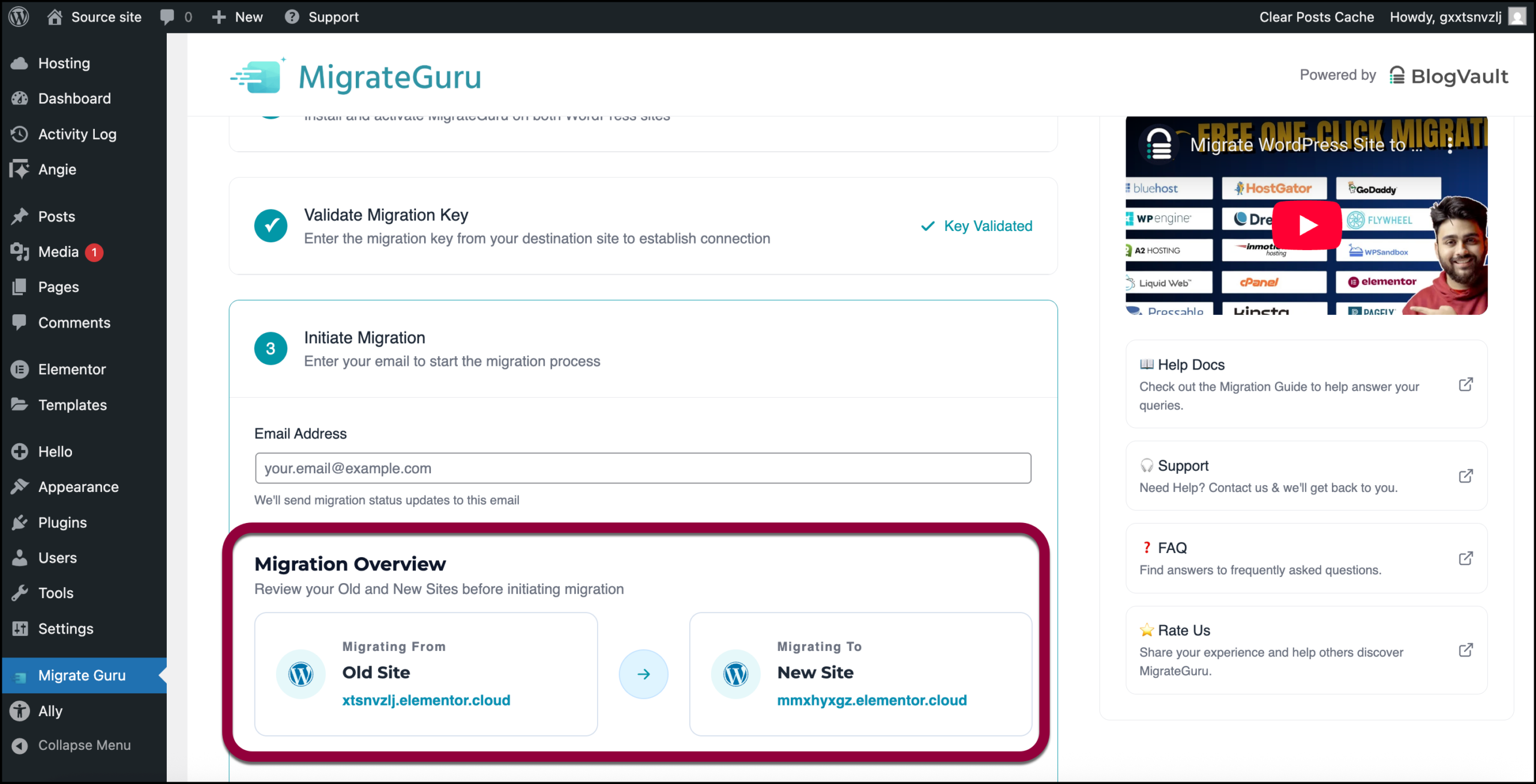 - In the MigrateGuru Migration Key field, paste the key you copied in step 6.