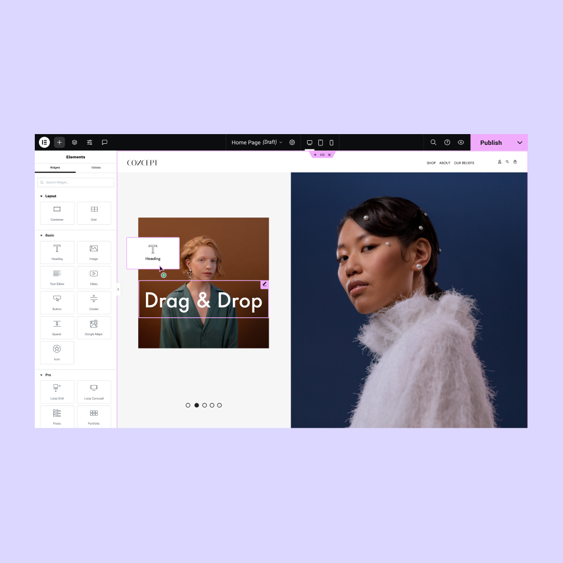 Choose from dozens of widgets to help you build every part of your page, from complex designs to ecommerce capabilities.