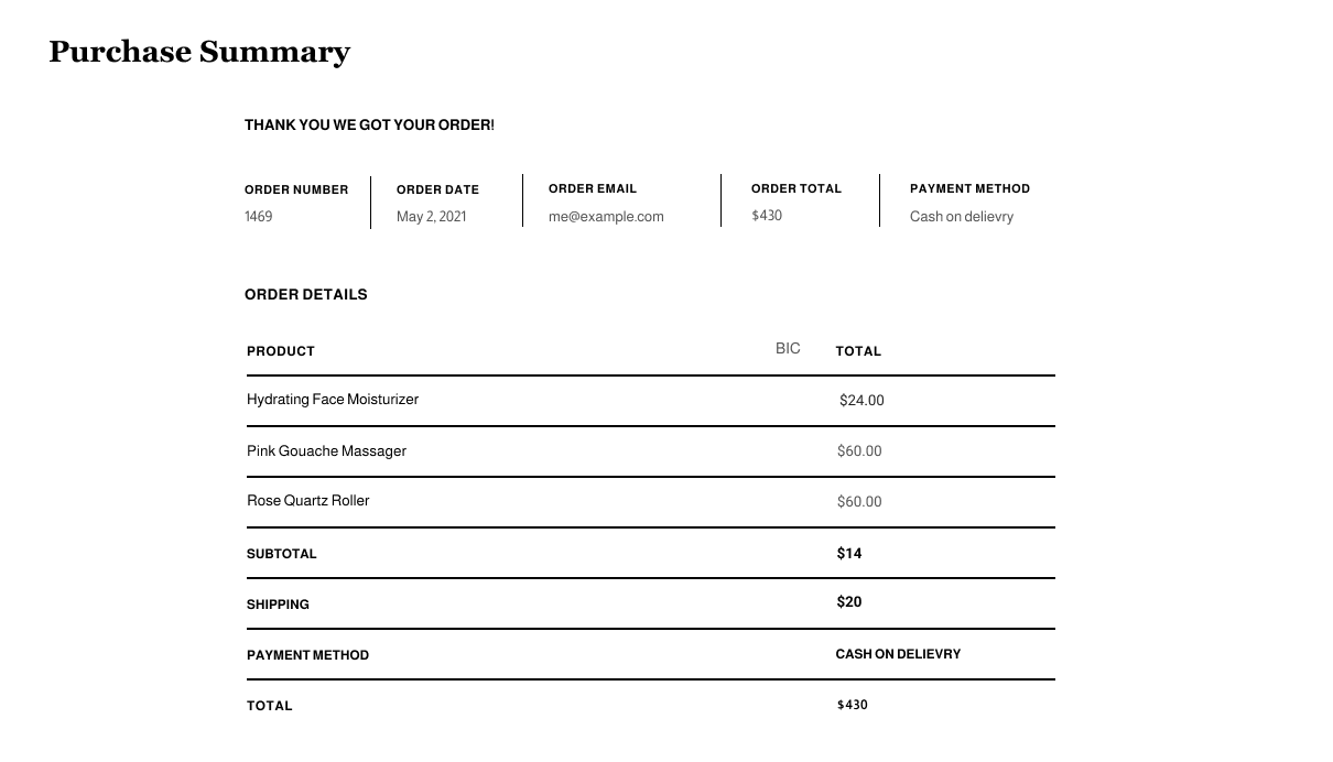 Thank your customers and provide them with a summary of their purchase to encourage repeat visits.