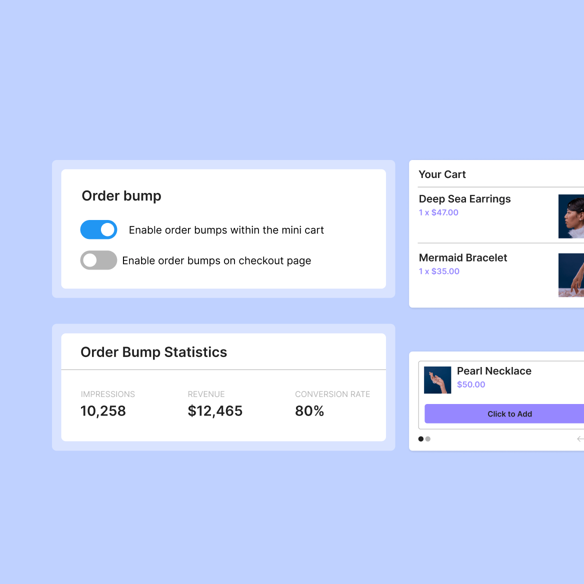 | Order BumpFeature a product next to the "Place Order" button with an easy add to cart option. | ||