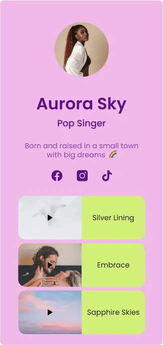 Create an memorable online presence with seven different Link in Bio layouts that fit your brand and marketing needs.