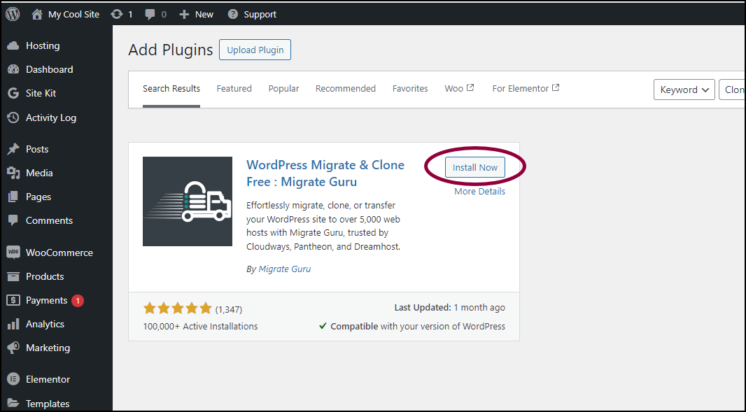 - After locating the Migrate Guru plugin, click Install Now.