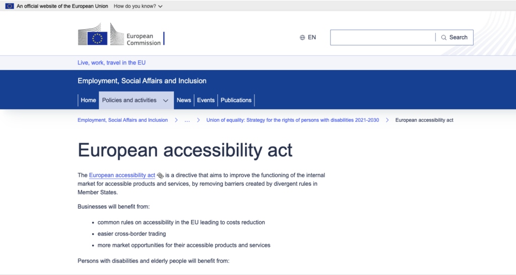 Adopted in 2019, the European Accessibility Act aims to make goods and services more accessible to approximately 25% of EU residents with disabilities, accounting for over 100 million people.