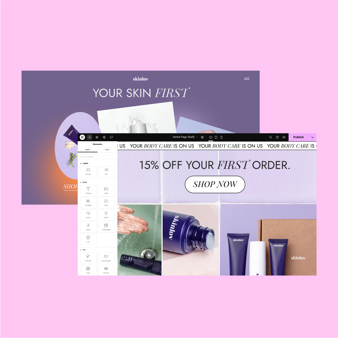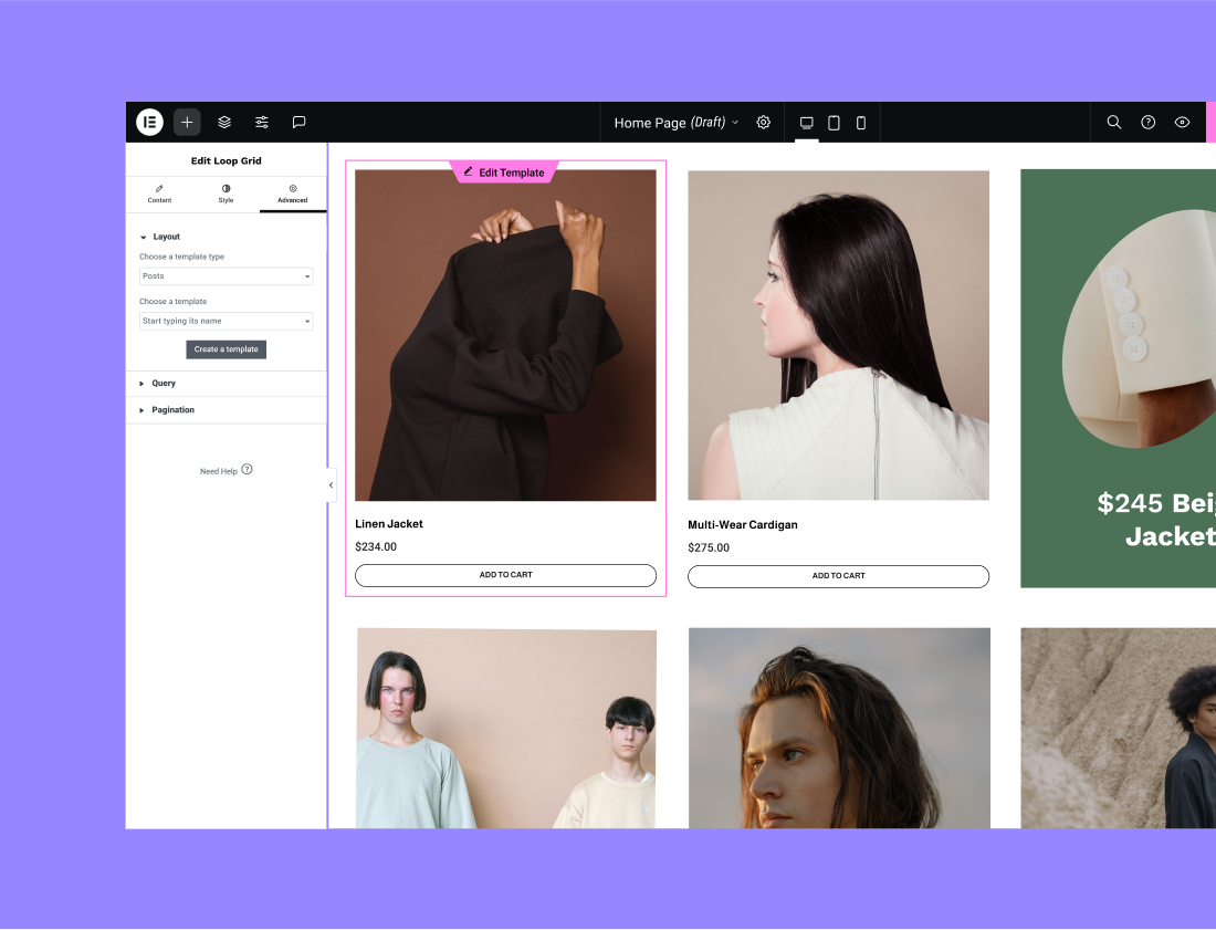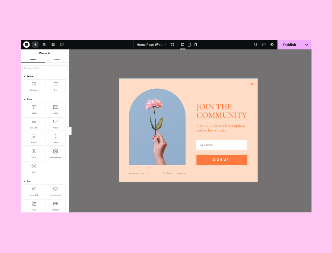 Choose from dozens of widgets to help you build every part of your page, from complex designs to ecommerce capabilities.