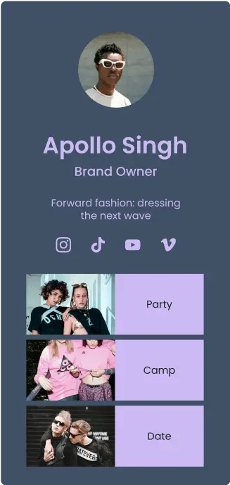 Create an memorable online presence with seven different Link in Bio layouts that fit your brand and marketing needs.
