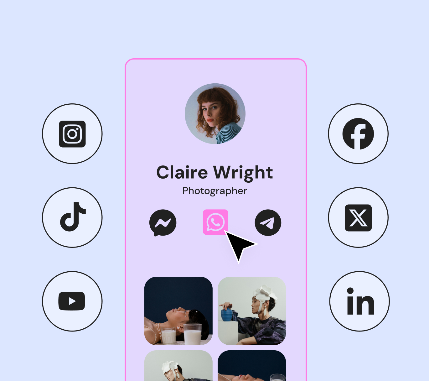 Link in Bio widget that showcases all of your important links in one place.